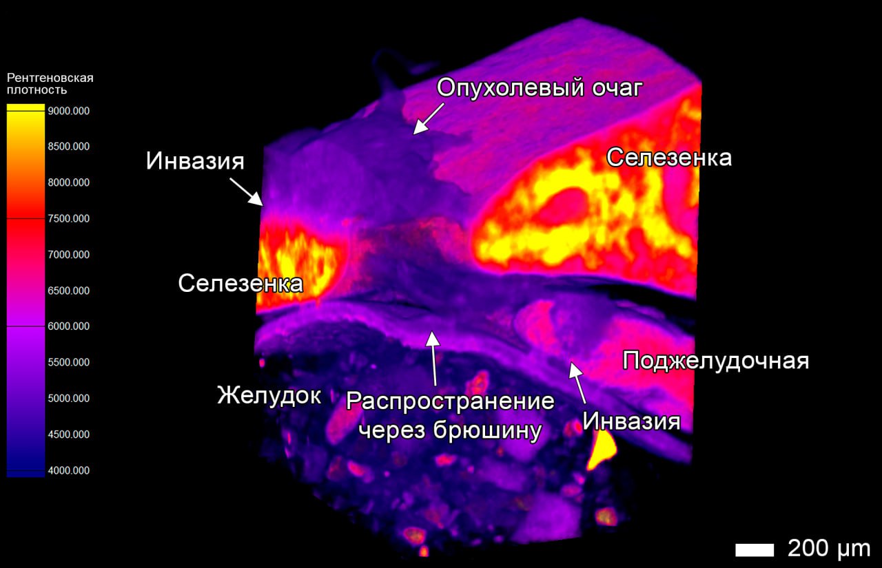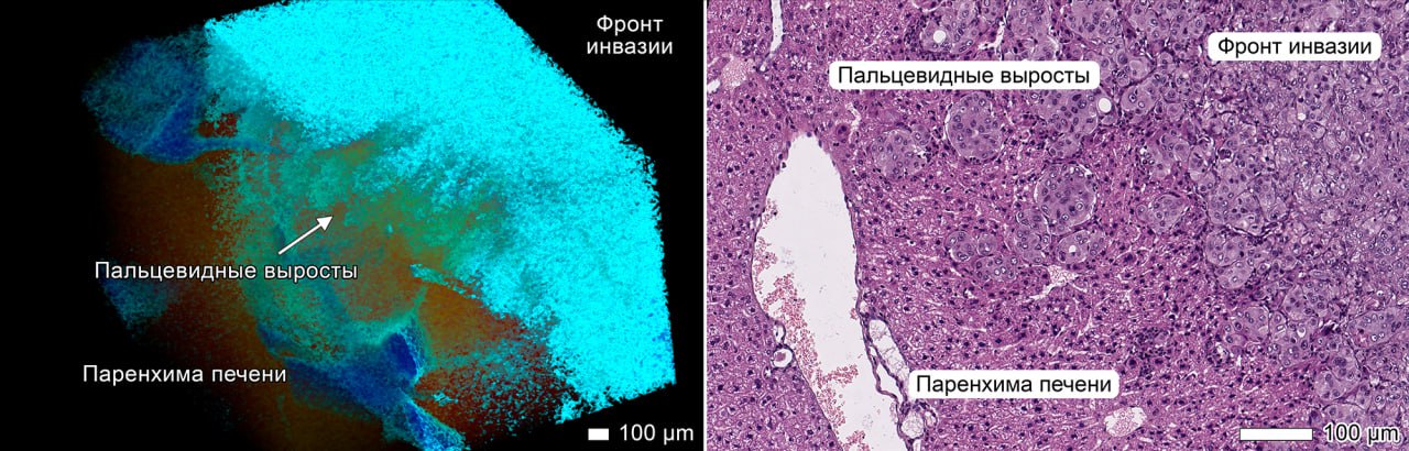 Затем при помощи рентгеновской микротомографии и гистологического исследования сопоставимых проекций исследователи смогли детально изучить, как раковые клетки проникают в окружающие ткани, формируют метастазы и взаимодействуют с микроокружением.