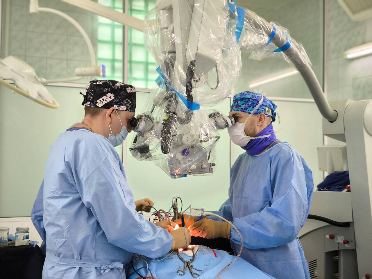 Первую операцию пациентке выполнили в ФГБУ «НМИЦ нейрохирургии им. ак. Н.Н. Бурденко» МЗ РФ в 2018 году. Специалисты провели контурную резекцию краниофациальной фиброзной дисплазии слева с пластикой дефекта основания черепа перемещённым лоскутом надкостницы. В дальнейшем пациентка наблюдалась у нейрохирурга и делала МРТ головного мозга для контроля.