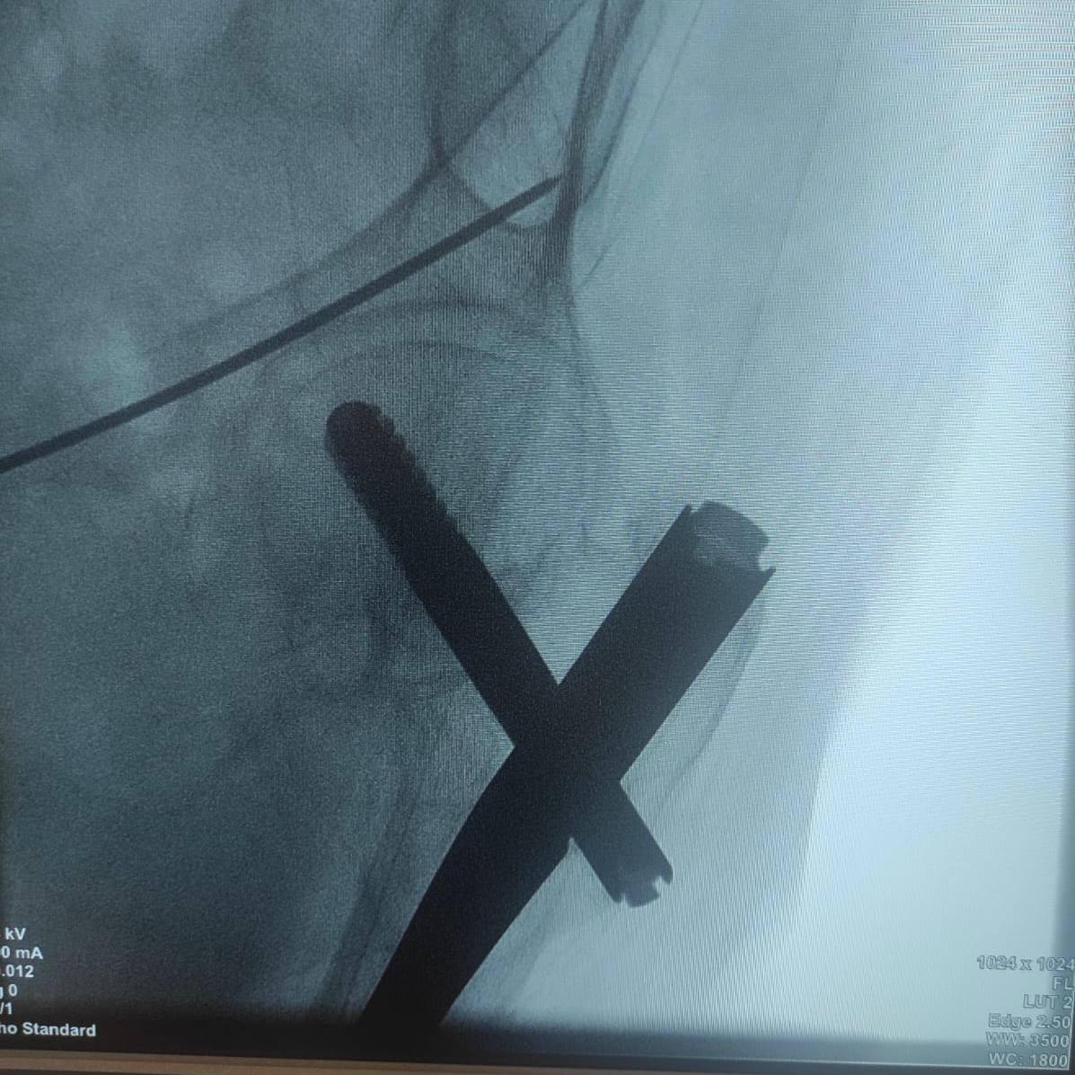 Была выбрана методика перкутанного остеосинтеза винтами. Операция ранее не проводилась в больнице, поэтому методика была продемонстрирована руководителем Клиники реконструктивно-восстановительной хирургии повреждений конечностей и таза, д.м.н. Алексеем Гринь.