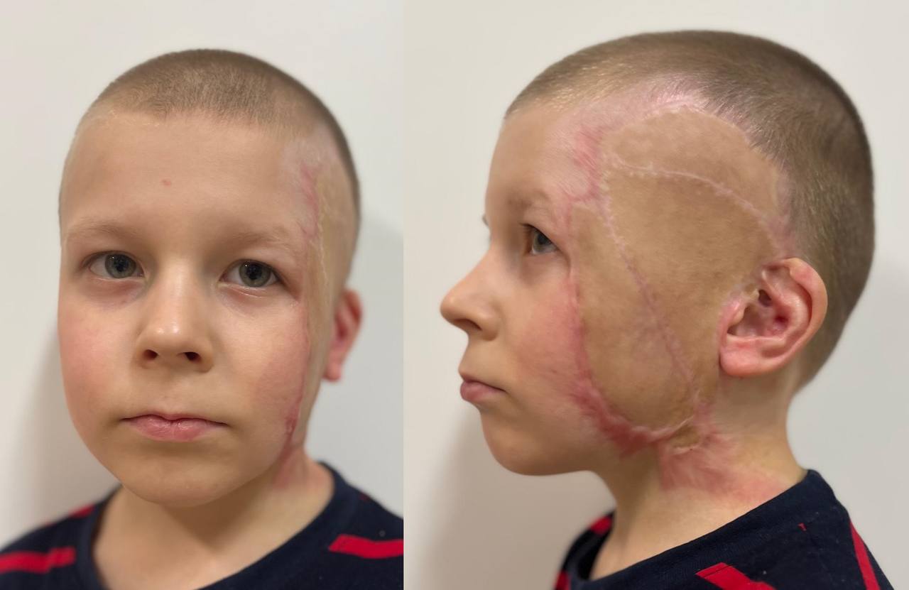 Контрольный осмотр показал, что был достигнут желаемый косметический эффект, функции и мимика лица полностью сохранились. В дальнейшем ребенку еще предстоит лазерная коррекция рубцов и тканей, чтобы цвет и текстура кожи максимально приблизились к естественным.