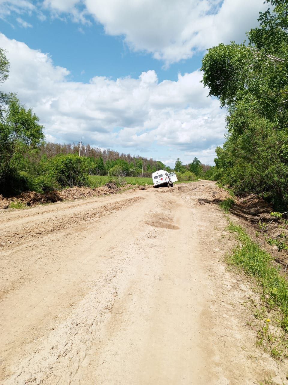 «”Скорую” вызвали к женщине с сердечным приступом. Но она никуда не доехала. “Скорая” сидит в канаве. Вот такая у нас прекрасная дорога», – рассказал автор видео.