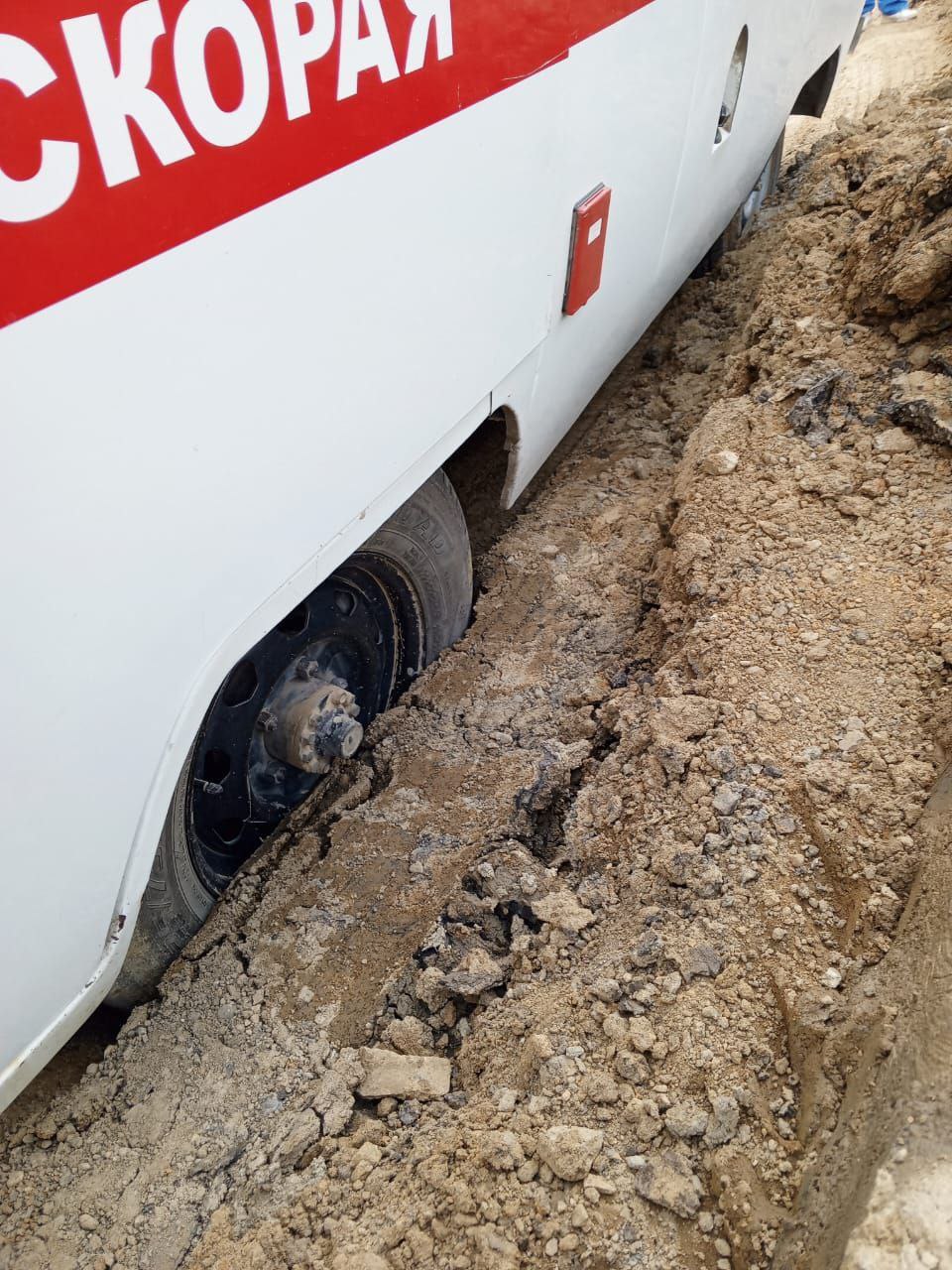 Муж пациентки вынужден был ехать навстречу, чтобы забрать врачей, а затем помог вытащить машину.