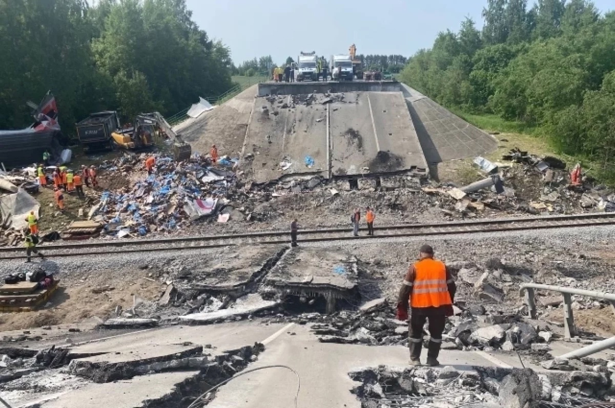 Напомним, в ночь на первое июня произошёл теракт на одном из автодорожных мостов Брянской области. В это время под ним проезжал пассажирский поезд, на который и рухнул мост вместе с машинами. В трагедии пострадали более 120 человек, семеро погибли.